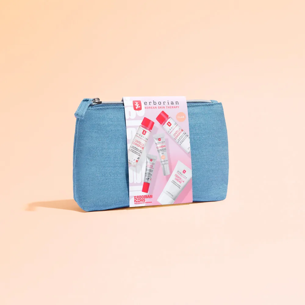 Neceser de descubrimiento con los productos más icónicos de Erborian para pieles claras.